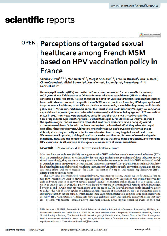 En France, la limite d'âge portée à 26 ans pour la vaccination contre les papillomavirus humain des hommes ayant des rapports sexuels avec des hommes (HSH), relève d'une politique de santé sexuelle ciblée. Celle-ci est bien acceptée par certains HSH alors que d'autres s'y opposent, considérant qu'elle les stigmatise et plaidant en faveur d'une santé sexuelle égale pour tous. Les auteurs recommandent d'étendre la vaccination contre le HPV à tous les adultes jusqu'à l'âge de 26 ans, quelle que soit leur orientation sexuelle.