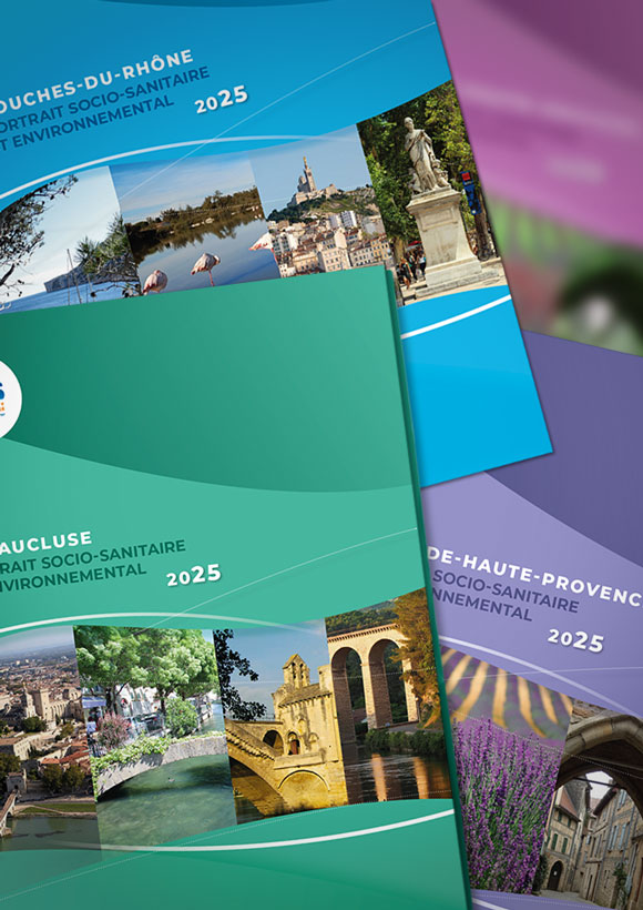 En 2018, l’ORS a réalisé les portraits socio-sanitaires et environnementaux des six départements de la région, à la demande de la Région Sud et de l’Agence Régionale de Santé Provence-Alpes-Côte d’Azur. En 2022, ces documents ont été mis à jour, mais leur format a évolué, pour mieux répondre aux besoins des acteurs : de nouvelles informations ont été ajoutées de façon systématique (inégalités territoriales, évolutions temporelles, encadrés de mise en perspective, synthèses « l’essentiel » par chapitre) et des documents complémentaires aux portraits départementaux ont été produits (note synthétique régionale, notes thématiques, diaporamas synthétiques). Une nouvelle actualisation des portraits départementaux va être réalisée au cours de l’année 2025.